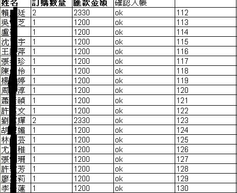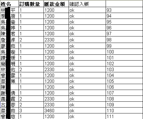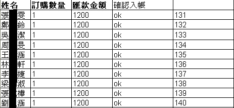 截至11/3 下午3:30為止的確認入帳名單如下: